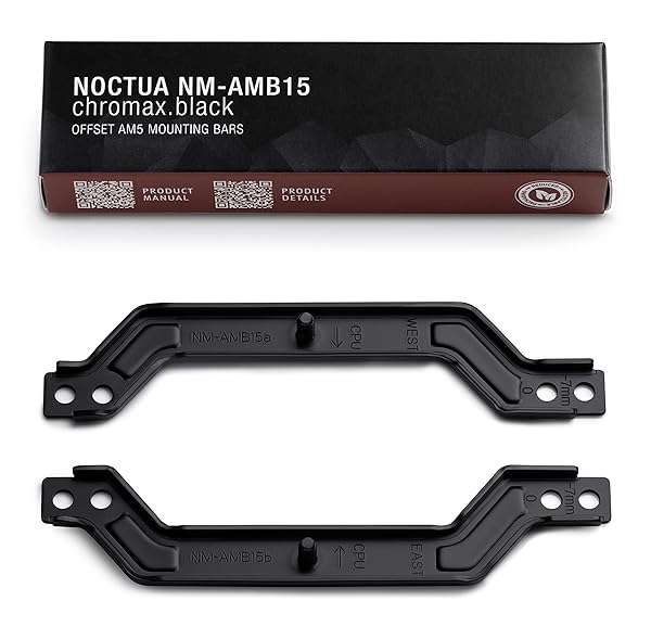 - Noctua NM-AMB15 chromax.Black, Offset AMD AM5 Mounting Bars for Improved Cooling Performance (Black) provides reliable performance and quality- 7mm offset shifts the heatsink directly over the hotspot of AM5 Ryzen CPUs, better contact over the processors CCD(s) typically improves temperatures by 1-3C- For Noctua CPU coolers with 78mm mounting pitch that require mounting bars on the west (left) and east (right) side of the AM5 socket for optimal orientation
