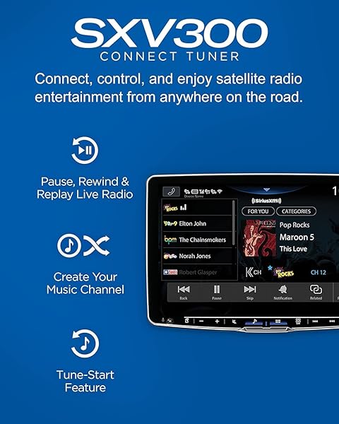 - SiriusXM Satellite Radio Vehicle Tuner, Add to Any SiriusXM-Ready Car Stereo SXV300V1 provides reliable performance and quality- SUBSCRIPTION REQUIRED: Experience over 350 Satellite and Streaming Channels- CONNECT & ENJOY - Add SiriusXM satellite radio to any SiriusXM-Ready head unit (1) and enjoy 150+ channels of exclusive SiriusXM content in your car with this easy-to-install satellite radio tuner kit