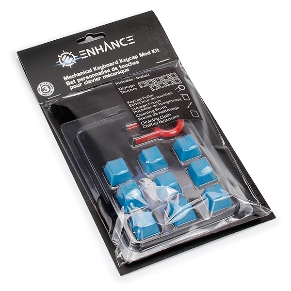 - ENHANCE PBT Keycaps Set Doubleshot Key Caps Gaming Keyboard Upgrade Kit - Plastic Backlit Clear WASD Compatible with Mechanical Switches - Keycap Puller, Dust Brush and Microfiber Cloth - Blue offers reliable performance and quality- KEYBOARD MOD KIT: This set of contoured and textured key caps includes a dust brush, microfiber cleaning cloth, keycap puller, and a drawstring storage pouch