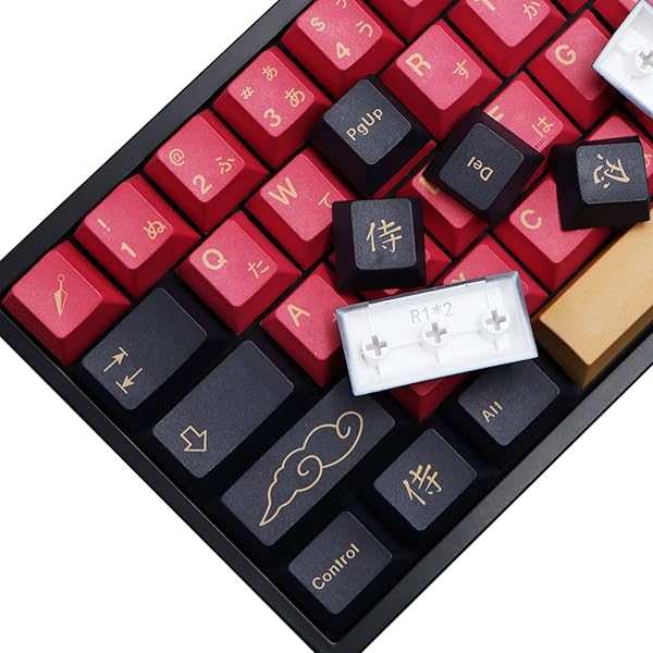 - MOLGRIA Red Samurai Keycaps, 129 Set PBT KeyCaps for Gaming Keyboard, Cherry Profile Dye Sublimation Custom Keycaps with Puller for Gateron Kailh Cherry MX Switch 104/87/71/61 60 Percent Keyboard p...- DURABLEMade from PBT materials with ergonomic ladder design and Cherry profile height, its anti-grease to ensure better using experience.