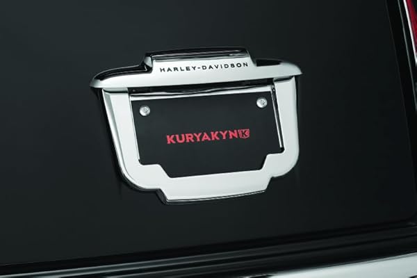 - Kuryakyn 5148 Motorcycle Accent Accessory: License Plate Frame for 2010-19 Harley-Davidson Trike Motorcycles, Chrome offers reliable performance and quality- Utilizes factory plate illumination and reuses plated mounting hardware for easy installation- Aluminum construction designed to match OEM trunk styling, has full coverage of the license plate with a clean design that complements Tri Glide trunks