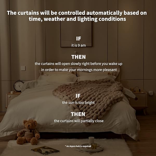 - Aqara Smart Curtain Motor E1(Track Version, 1 Pack), Requires AQARA Zigbee 3.0 HUB, Electric Curtain Driver for Remote Control and Home Automation, Support HomeKit, Alexa, Google Assistant and IFTT...- Works with Any DecorNOTE: An Aqara Zigbee 3.0 Hub is required and sold separately. Easily mount the Curtain Motor E1 onto your existing curtain track or rod without any additional tools, it will be...