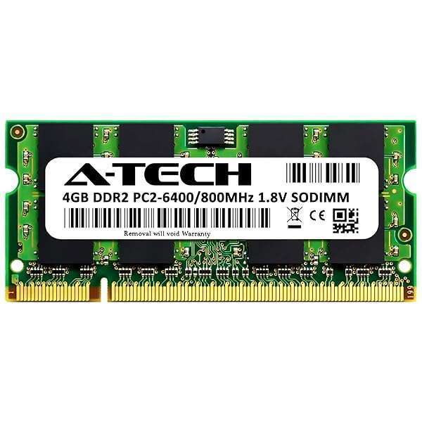 - A-Tech 4GB DDR2 800MHz SODIMM PC2-6400 1.8V CL6 200-Pin Non-ECC Unbuffered Laptop RAM Memory Upgrade Module provides reliable performance and quality- 4GB ( 1x 4GB Module ) | DDR2 800 MHz ( PC2-6400 / PC2-6400S ) | DDR2 SO-DIMM ( 200-Pin ) | Non-ECC Unbuffered- High performance Memory RAM upgrade designed for DDR2 SODIMM compatible Laptop, Notebook, & All in One (AIO) computers
