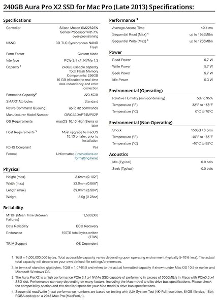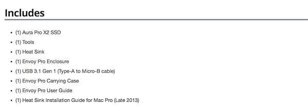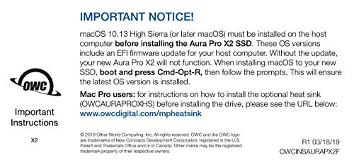 - OWC 240GB Aura Pro X2 SSD Complete Upgrade Solution Compatible With Mac Pro (Late 2013), High Performance NVMe Flash Upgrade, Including Tools, heatsink, and Envoy Pro Enclosure (OWCS3DAPT4MP02K) offers reliable performance and quality- High performance for daily use- Durable construction and reliable quality- User friendly design for convenience- A great value addition to your collection