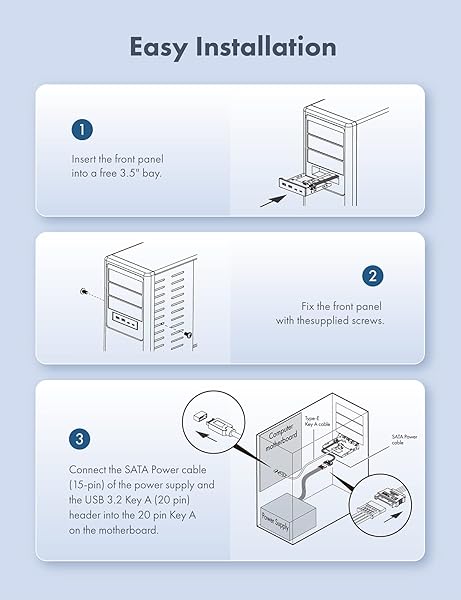 * GRAUGEAR 3.5 Inch Front Panel Hub, 4 Ports Internal Metal USB Hub, 2X USB-C 10Gbps and 2X USB 3.2 Gen 2 Ports, USB3.2 Type-E Key-A 20-Pin Header & 15-Pin SATA Power Connector Required [G-MP02]: 10gbps high speedboth usb and usb-c ports supports usb3.2 gen2 data transmission speed up to 10gbps for steady and efficient data transfer * Backward compatible with USB 3.0 and 2.0 at the speed limits of 5Gbps and lower * Wide CompatibilityCompatible with Windows 11/10/8/7 * Convert your 3.5 floppy
