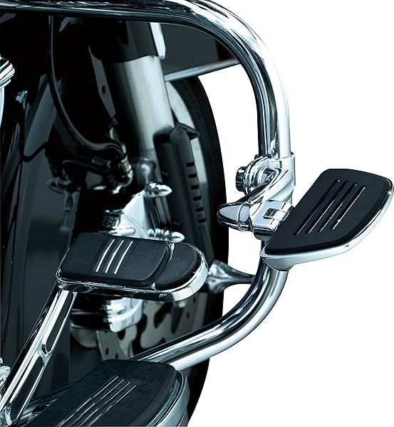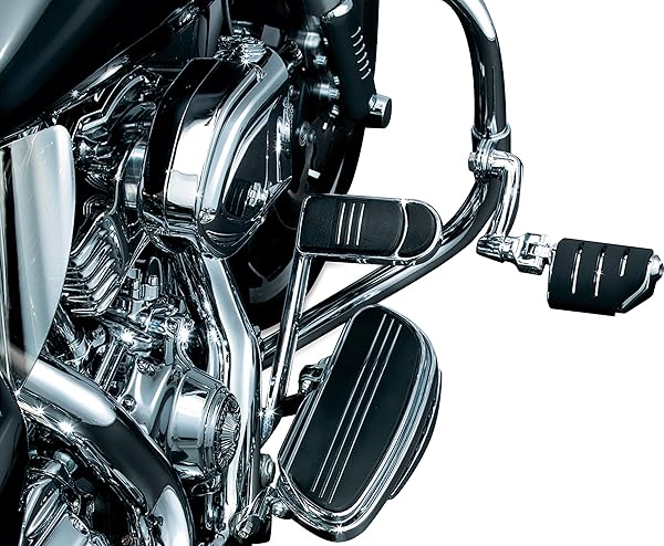 "Upgrade Your Ride: Kuryakyn 7986 Longhorn Offset Footpeg Mounts for 1-1/4" Engine Guards - Chrome, Quick Clamps, 1 Pair"