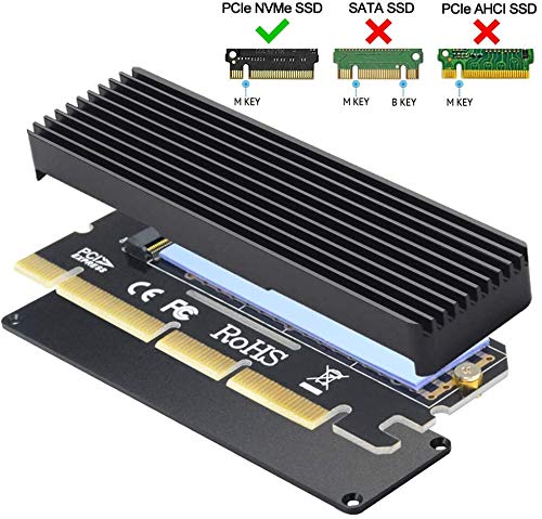 - GODSHARK NVME Adapter with Heat Sink, M.2 SSD Key M to PCI Express x4/x8/x16 Converter Expansion Card, Support 2230 2242 2260 2280, Compatible for Windows XP 7 8 10 offers reliable performance and quality- You can use NVME SSD with this adapter without M.2 slot on the motherboard- Up to 3200+ MB/s random Read and 1500+ MB/s Write, blazing faster than USB-A or USB-C interface- Support PCIe X1 / X4 / X8 / X16 slot. DO NOT support M.2 SATA SSD (Key B)