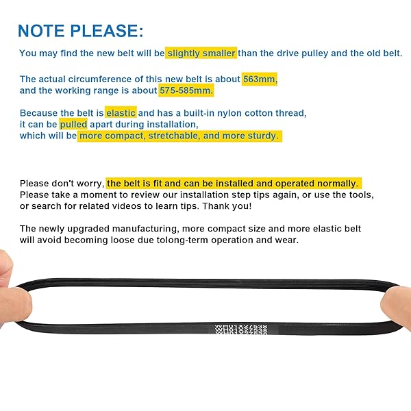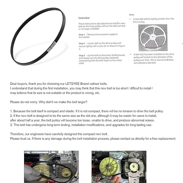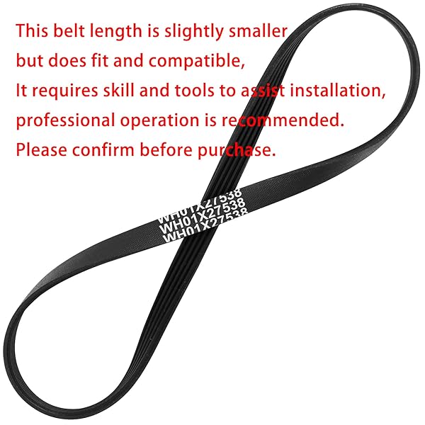 - Upgraded WH01X27538 Washer Drive Belt Compatible with GE, Hotpoint Washing Machines Belt Replacement w/Instruction 290D1101P005, AP6328256, PS12299369, 4587903 10-Year Warranty with reliable performance and quality- *Please Note First: A new belt will be slightly smaller than the drive pulley and the old belt, this is normal. First, install the small pulley and then try to push it down the big pulley, Use a screwdriver to keep the belt on the big pulley while spinning it around. T