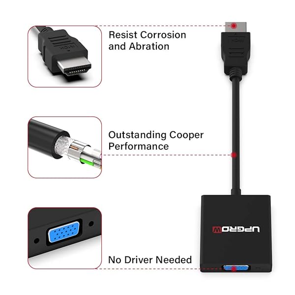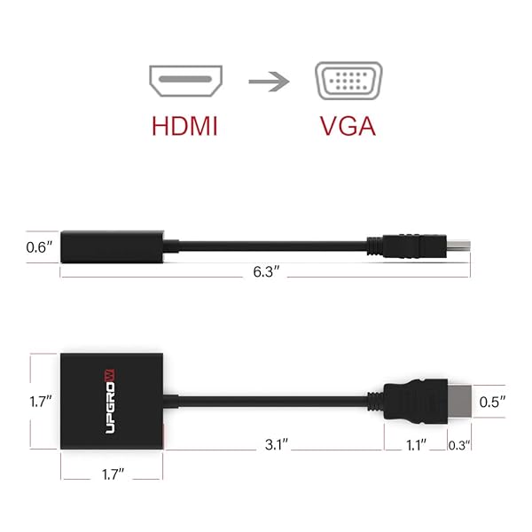* UPGROW HDMI to VGA Adapter HDMI Male to VGA Female Converter Support Computer, Desktop, Laptop, PC, Monitor, Projector, HDTV, Chromebook, Xbox and More, Model Number: UPGROWHMVF01: upgrow hdmi to vga adapter male to female upgrow hdmi to vga is the ideal solution for connecting a computer or other hdmi source to a display with full hd video * A device with HDMI interface to projector * TV & Monitor with VGA interface for big-screen viewing * HDMI to VGA converter support resolution up to