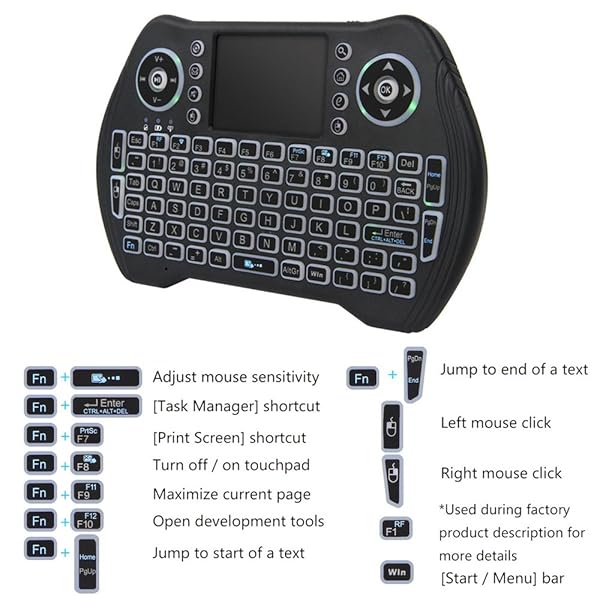- Upvivi Backlit Mini Keyboard,2.4GHz Wireless Mini Keyboard with Touchpad Mouse Handheld Remote Control for PC, Raspberry Pi 2, Pad, Smart TV, Android TV Box offers reliable performance and quality- Easy to connect and useMini wireless keyboard is connected by USB receiver (in the battery compartment), the connection distance is up to 10 meters, plug in the USB receiver and then turn on the computer and you can use it