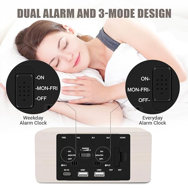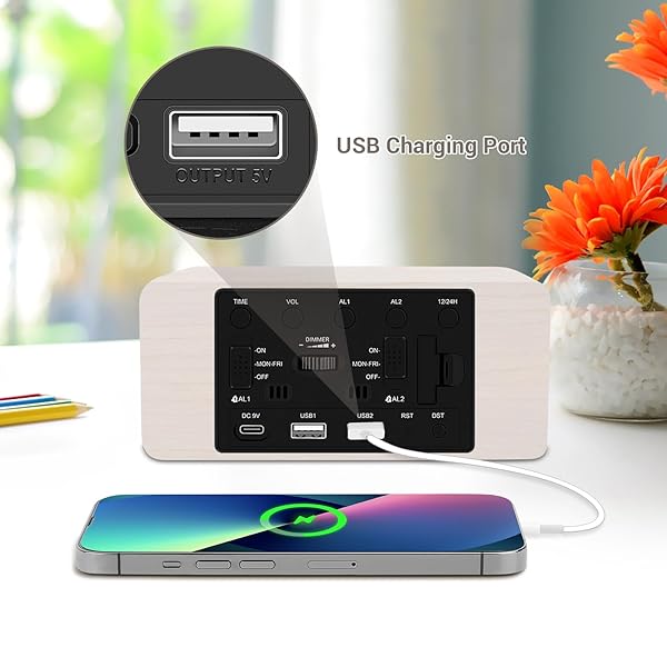 - URAYCO Wooden Digital Alarm Clock, 10W Fast Wireless Charger Station & 2 USB Charging Ports, with 0~99% Dimmer, Dual Alarm, Weekday/Weekend Mode, Wood LED Clock for Bedroom, Desk, Office with reliable performance and quality- Multifunctional All-in-one Clock- It combines alarm clock, wireless charger and USB charging port - all in a minimalist wood box, ultra-compact design fits easily on any table, bedroom or bedside for decor.- Stylish Wooden Design for Decor- Its large s