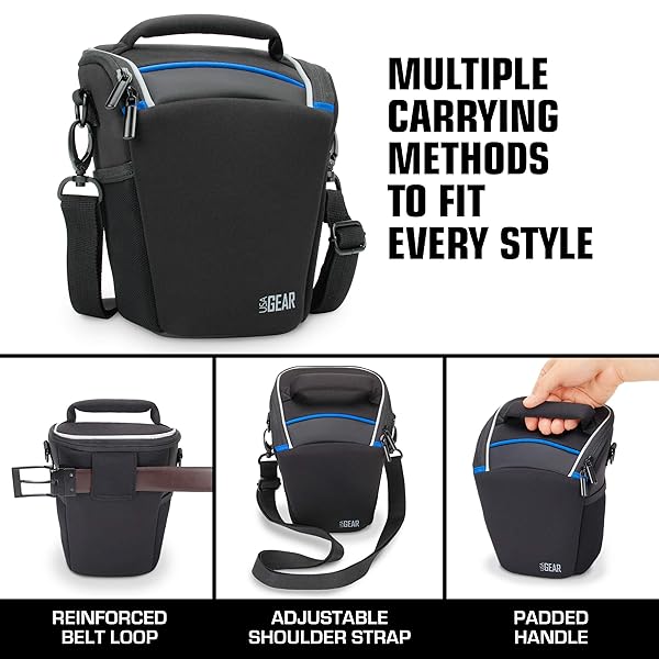 - USA Gear DSLR Camera Case for Men and Women with Top Loading Accessibility, Adjustable Shoulder, Small Camera Sling Bag, Travel Padded Handle - Camera Holster Bag for Nikon, Canon, Panasonic (Black...- EASILY REMOVE YOUR CAMERA FROM THE CASE with it's top-loading design to quickly get the shot you want. Compatible with Canon EOS Rebel T6/T6i/SL2, Nikon D3400/D3500 and many more SLR Cameras!