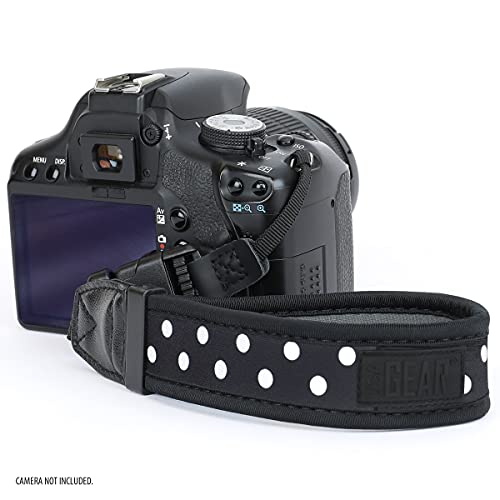 USA GEAR Camera Wrist Strap - Neoprene Camera Strap with Comfortable Support and Quick Release Buckles - Compatible with Canon, Fujifilm, Nikon, Sony and More Mirrorless Camera Hand Strap (Polka Dot)