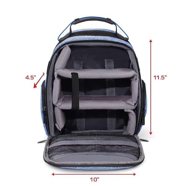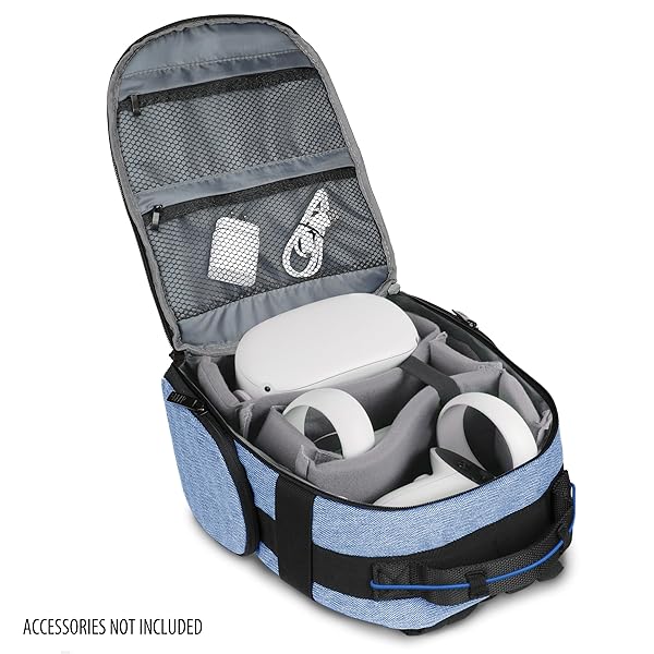 * USA GEAR VR Headset Case - Virtual Reality Backpack with Customizable Interior Compartments Compatible with VR Gaming Headset, Controllers, and More Virtual Reality Gaming Accessories - Blue: customizable interior dividers: the removable dividers can be arranged to create custom compartments and pockets for your vr headset * VR controllers * Cables * And more gaming accessories * DURABLE CONSTRUCTION: Made with tightly woven RipStop Nylon and scratch resistant interior