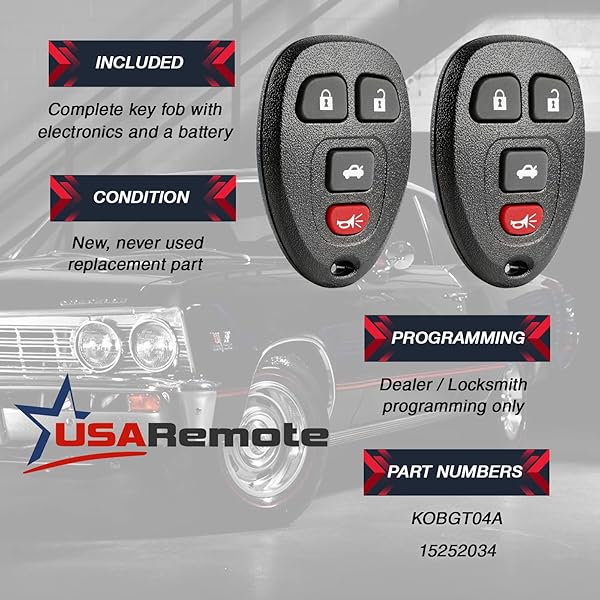 - Key Fob Keyless Entry Remote fits Chevy Cobalt Malibu/Buick Allure Lacrosse/Pontiac G5 G6 Grand Prix Solstice/Saturn Aura Sky (fits Part # 15252034), Set of 2 offers reliable performance and quality- fits Chevy Cobalt Malibu / Buick Allure Lacrosse / Pontiac G5 G6 Grand Prix Solstice / Saturn Aura Sky- Replacement for P/N: 15252034- Dealer or locksmith programming is required- Complete electronic assembly with battery