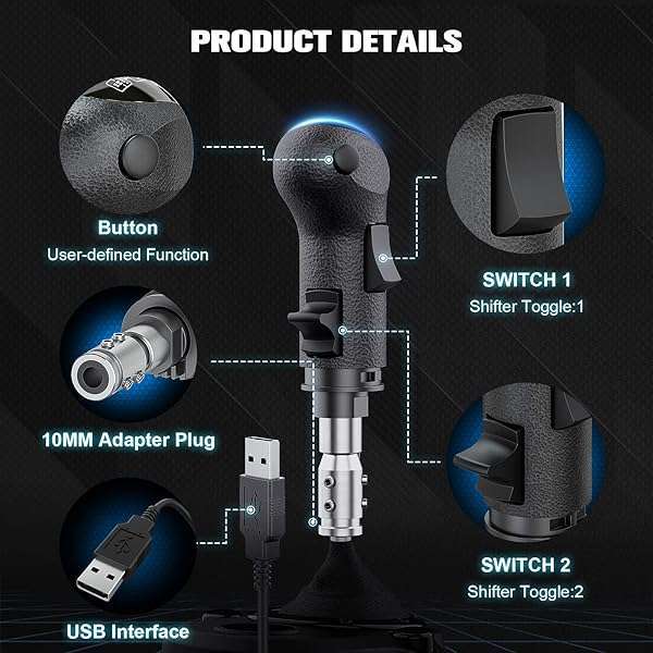 - aikeec USB American Truck Simulator Shifter, Gearshift Knob Fit for ATS & ETS2 Games, PC Sim Racing Shifter Compatible with Logitech G27 G29 G920 Thrustmaster TH8A Fanatec provides reliable perform...- The ATS Shifter comes with customized button , allows you to use switches to quickly switch between high and low gears. It supports up to 18 gears and also includes custom setting button for person...