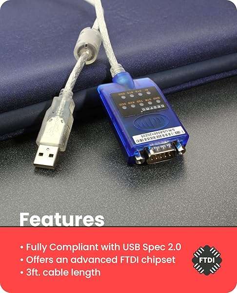 - Gearmo USB to Serial RS-232 Adapter with LED Indicators, FTDI Chipset, Supports Windows 11/10/8.1/8/7, Mac OS X 10.6 and Above offers reliable performance and quality- [ USB to RS-232 Serial Adapter ] : 5ft Cable Length - Easily connect legacy DB-9 serial devices to modern USB-equipped computers. Uses include industrial, lab, and point-of-sale applications