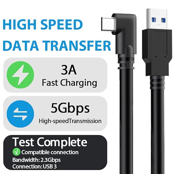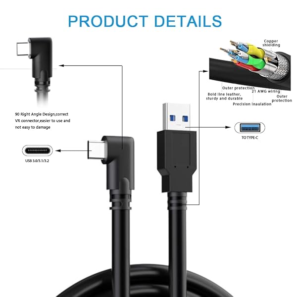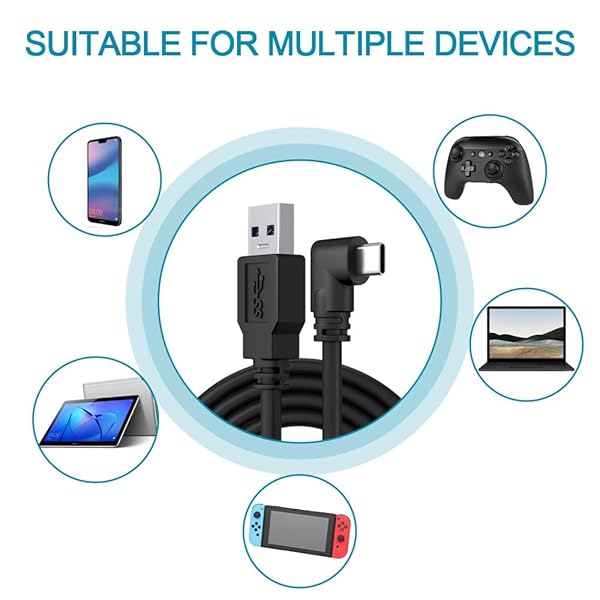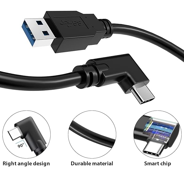 * VakiReyy 10FT Link Cable for Oculus Quest 3/Quest 2, High Speed Data Transfer Charging Cable USB 3.0 to USB C Cable Charger for Oculus Quest 2 Accessories VR Headset Gaming to PC: link cable for oculus quest 2: 10-foot long link cable for quest 2 * L-shaped design * Not easy to fall off * Allowing you to move freely without restriction while playing games * 90 right angle