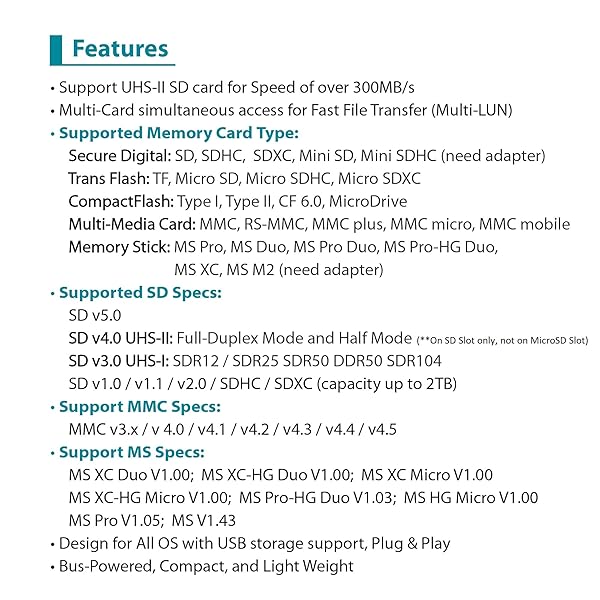 - Vantec USB 3.0 Multi-Card Reader UHS-II, SD 4.0, Multi-LUN (UGT-CR615), Black offers reliable performance and quality- Support UHS-II SD card for Speed of over 300MB/s; Multi-Card simultaneous access for Fast File Transfer (Multi-LUN)