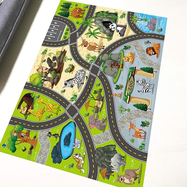 - Zoo Playmat,Educational Animal Carpet Playmat, Activity mat offers reliable performance and quality- Compare with competition, our rug is made of soft non-woven fabrics texture instead of thin PVC.Soft, safe, water resistant & easy to clean with damp cloth & mild soap- Easy to store, fold and roll up very well as a small box size,Non-Toxic, FREE of Phthalates and BPA- Easy to use, interlocking tiles connect and detach quickly and easily
