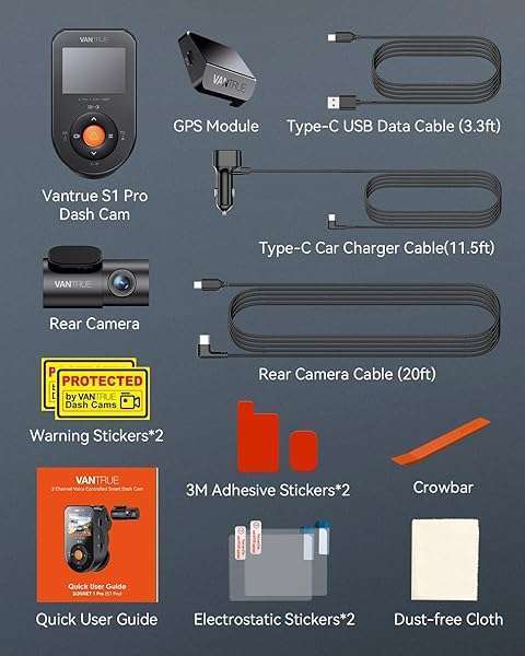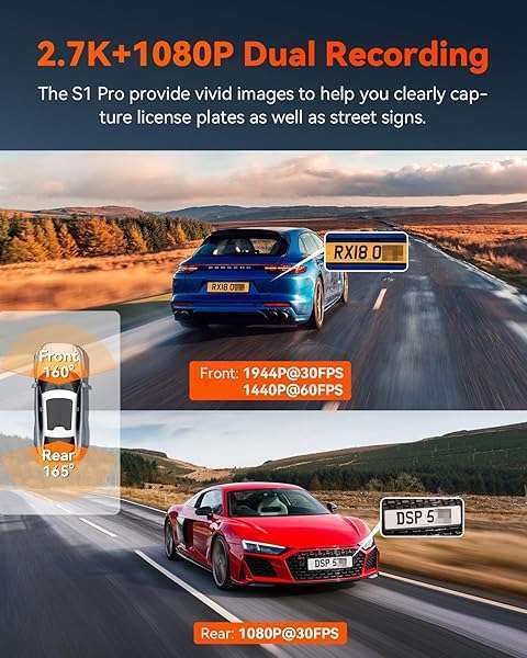 * Vantrue S1 Pro Dual 1440P Dash Cam Front and Rear, Dash Camera w/2.7K, STARVIS 2, HDR Night Vision, 5G WiFi, 60FPS, Optional Remote Live View, GPS, Voice Control,24/7 Parking Mode, Support 512GB Max: 2.7k front and rear dash cameracapture sharp details with dual-lens recording (1944p+1080p@30fps) or 1440p@60fps front video (2x smoother) for blur-free license plates/signs at high speeds * The 160 ultra-wide lenses cover multiple lanes distortion-free * While optional CPL filters (ASIN: