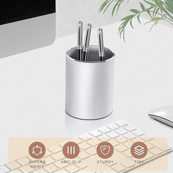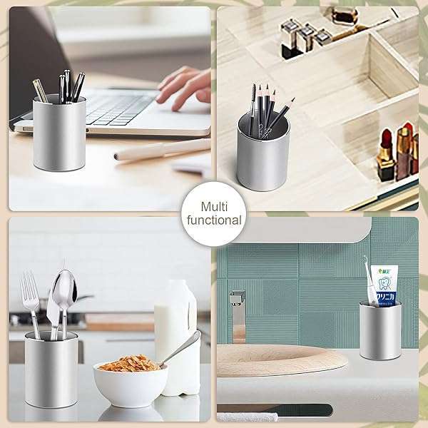 - Vaydeer Metal Pen Holder Aluminum Pencil Holder for desk, Round Desktop Organizer and Silver Pencil Cup for Office, School, Home and Stationary Supplies (3.15 x 3.15 x 3.94 Inches) offers reliable performance and quality