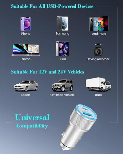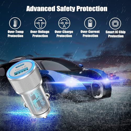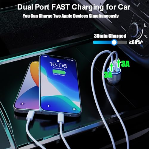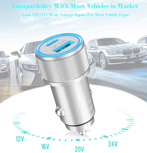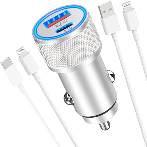 - [Apple MFi Certified] iPhone Fast Car Charger, Veetone 48W Dual Port USB C Power Delivery All Metal Car Adapter with 2 Pack Lightning Cable, PD/QC 3.0 Type C Rapid Car Charging for iPhone/iPad/Airp...- PD 30W USB-C+QC 18W USB-A Car Charger : Equipped with 30W Power Delivery USB C Charger and 18W Quick Charge Charger (Total Power 48W), Veetone's Fast car charger can charge two devices simultaneous...