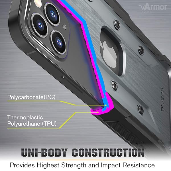 * VENA vArmor Rugged Case Compatible with Apple iPhone 12 / iPhone 12 Pro (6.1"-inch), (Military Grade Drop Protection) Heavy Duty Holster Belt Clip Cover with Kickstand - Space Gray: [rugged and protective holster case] all new varmor holster case compatible with iphone 12 / 12 pro is designed to add convenience while providing all-around protection for your phone * Works with Apple Pay * [DETACHABLE BELT CLIP SWIVEL HOLSTER] No more discomfort from putting the phone in your pocket * With the