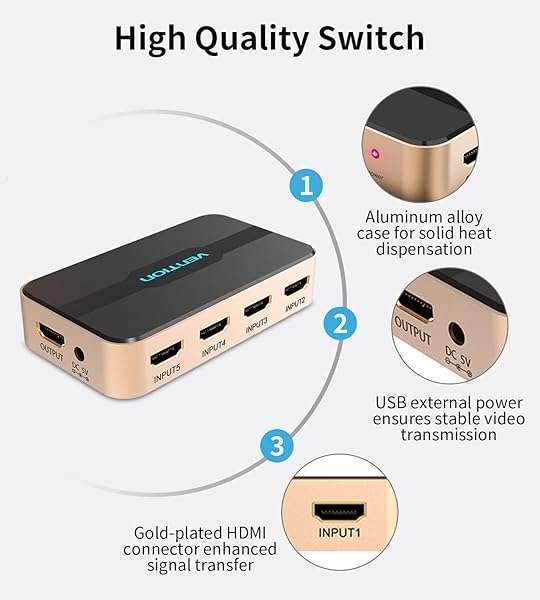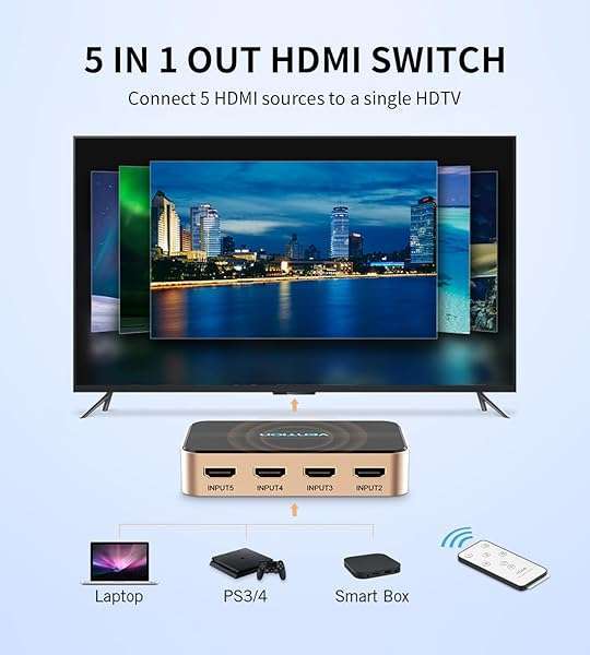 - VENTION HDMI Switch 5 in 1 Out 4K@30Hz HDMI Selector Switch with IR Remote HDMI 1.4 HDCP 1.4 Support 4K HD 3D 1080P 2160P HDMI Switch Box for Roku, Apple TV, PS5/4/3, Fire Stick provides reliable p...- 5 In 1 Out HDMI SwitcherThis HDMI splitter allows simultaneous connection of up to five input devices, sharing one TV/display without the need for repeated plugging and unplugging. It offers seamle...