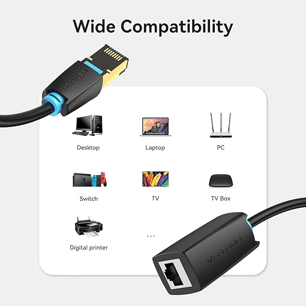 - VENTION Cat 8 Ethernet Extension Cable 3FT 40Gbps LAN Cable Extender Cat8 FTP Ethernet Patch Internet Cable Shielded RJ45 Male to Female Connector for Computer PC Laptop Smart TV offers reliable performance and quality- [Ethernet Extension Cord] Perfect for extending your existing CAT 8 ethernet connection cable to reach a router or video streaming device