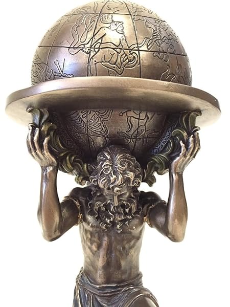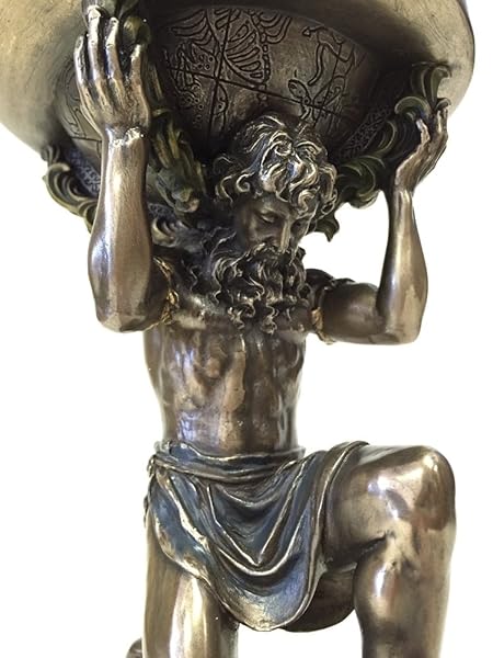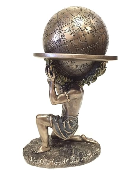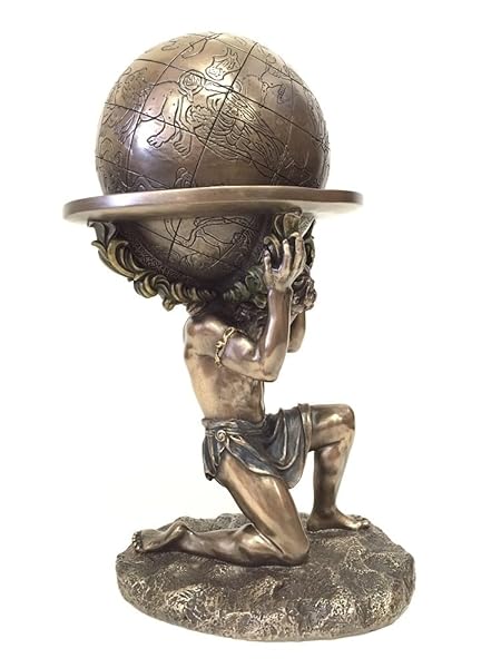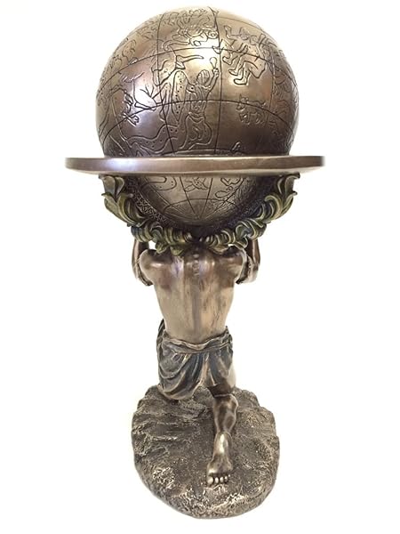 - wu Bronze Greek Titan Atlas Carrying The World Statue offers reliable performance and quality- Featuring the Greek Titan Atlas Carrying The Weight Of The Heavens On His Shoulders- The Statue Is Made Using Cold Cast Bronze Method, Cold Casting Is A Process Mixing Bronze Material With Resin To Create A Product With The Fine Details Of Resin Sculpture And Also The Metallic Surface Texture Of Actual Bronze- Size: L 6 1/8" W 5 1/8" H 9 1/4"
