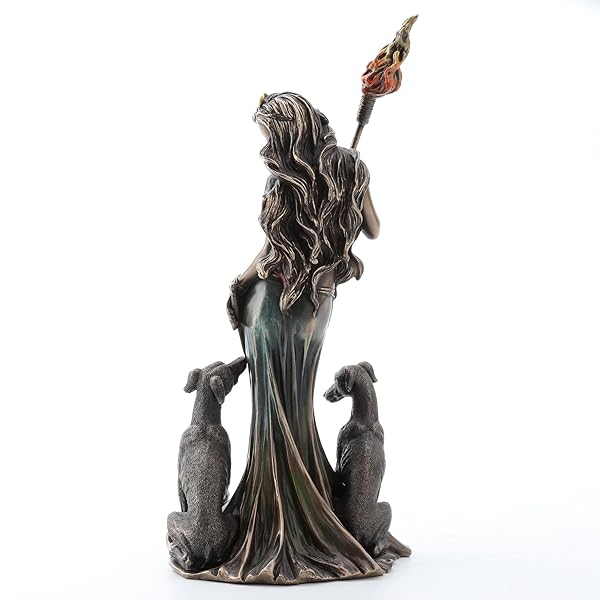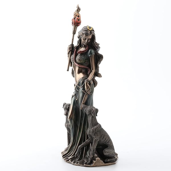 * Veronese Design 13 3/8 Inch Hecate Greek Goddess of Magic with her Hounds Cold Cast Resin Sculpture Bronze Finish: hecate is a goddess of greek mythology who was capable of the duality of both good and evil * She was associated with witchcraft * Magic * The moon * And creatures of the night such as hell hounds and spirits