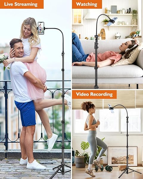 - Phone Tripod, 85" Tall Tripod for iPhone with Remote, Gooseneck and Phone Holder, Overhead Phone Stand for Video Recording Watching Cooking Fitness Vlog, Compatible with iPhone Android, Black with reliable performance and quality- Extra Tall Tripod with Flexible GooseneckPhone tripod with a 15.8" long gooseneck can extend from 19" to 85". The flexible gooseneck makes it easy to adjust the angle while capturing photos or videos, especially useful for low-angle or high-angle shots o