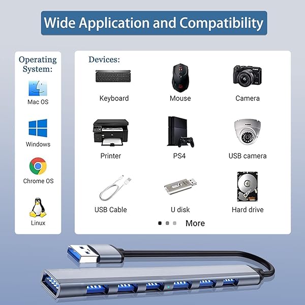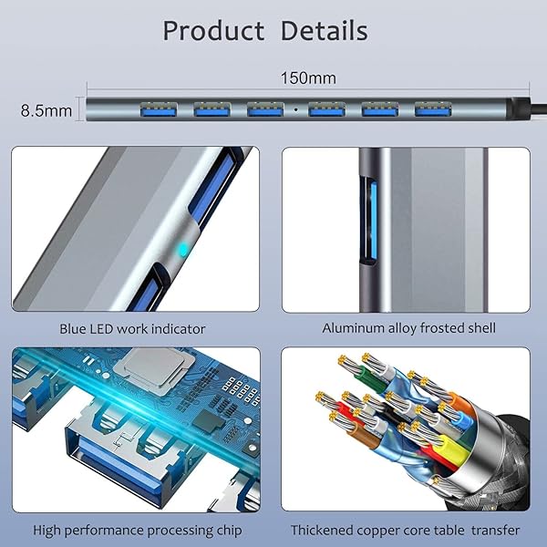 * USB Hub 3.0 with 7 Ports, VIENON Aluminium USB 3.0 Hub USB Splitter Extender for for Laptop, PC, MacBook, Mac Pro, Mac Mini, iMac, Surface Pro and More: 7 ports at the same time: this usb port expander for laptop provides stable performance for 7 ports work simultaneously without any pressure and the temperature keeps within moderate range * Perfect solution to the problem of insufficient USB interface of your device * 7-in-1 Data Hub with High-speed: USB 3.0 X1 + USB 2.0 X6 * Full USB 3.0