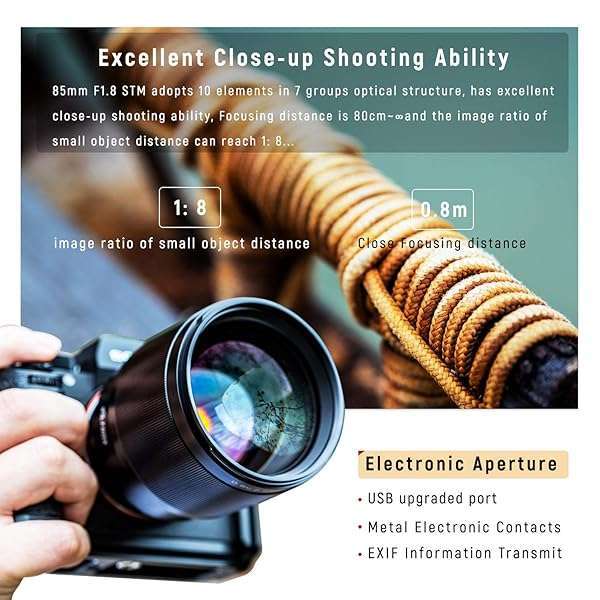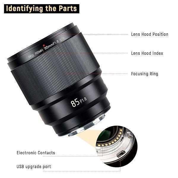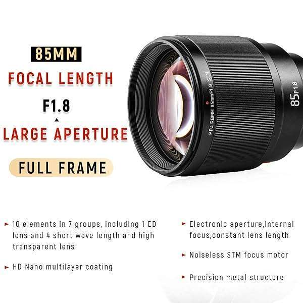 - VILTROX 85mm F1.8 Mark II Auto Focus Full Frame Lens for Sony E Mount, STM Large Aperture Medium Telephoto Portrait Fixed Focus Lens for Sony Camera A9 A7R3 A7III A7RIII A7M3 A7S2 A6500 A6300 provi...- SUPPORT AUTO FOCUS & EYE FOCUSAdopts steady, quick and smooth AUTO FOCUS, Which can capture the high speed moving objects, widely compatible with Full Frame cameras, after installing Sony camera, s...