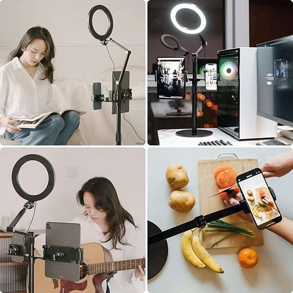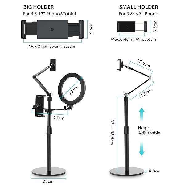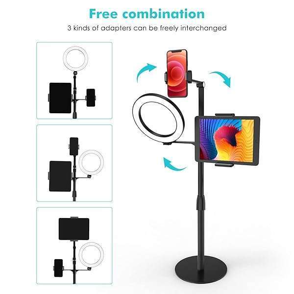 - viozon 3-in-1 Selfie Desktop Live Stand, Height Adjustable/Overhead, 8" LED Ring Light, Compatible with 3.5-13" Tablet& Phone, Suitable for YouTube/Tiktok/Recording/Streaming/Online Meeting-B provi...- Universal Fit viozon 3 in 1 Tablet&cellphone desktop stand includes two holders, which is applicable to 3.5-13" cellphone & tablet, suitable for YouTube/Tiktok broadcasting, online meeting, video r...