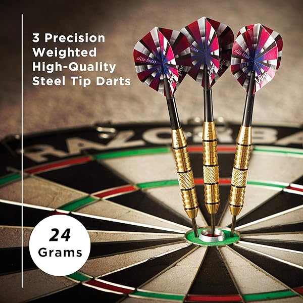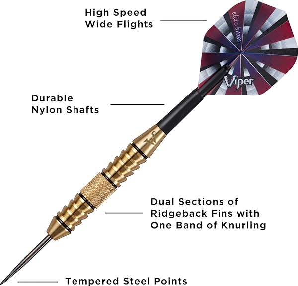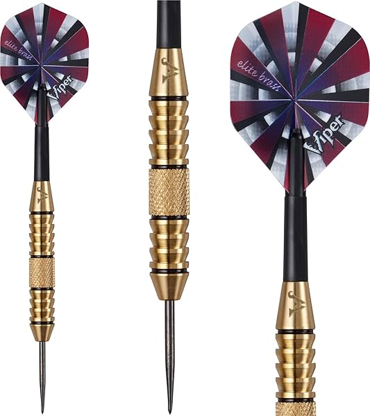 - Viper Elite Brass Steel Tip Darts, 24 Grams offers reliable performance and quality- Brass alloy barrels provide best bang for the buck with high strength and smooth styling- Knurled barrel with grooves and hand-painted rings provide an excellent and consistent grip throw after throw- Nylon flights are a durable and cost effective way to fasten your flights to the barrel