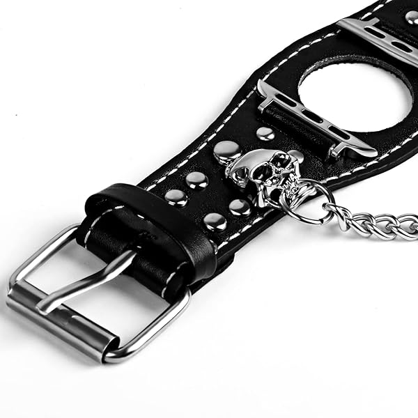 - VIQIV Leather Skull Cuff Bracelet Compatible with Apple Watch Band Ultra 49mm 44mm 45mm 42mm 41mm 40mm 38mm Series 9 8 7 6 5 4 3 2 SE for Men Women, Punk Steampunk Wrist Watch Strap for iwatch Band with reliable performance and quality- Viking Bracelets with punk chains rivets Compatible with Apple Watch Ultra 49mm / Compatible with Apple Watch Series 9 8 45mm 41mm / Compatible with Apple Watch SE 2 44mm 40mm / Compatible with Apple Watch Series 7 45mm 41mm / Compatible with Apple