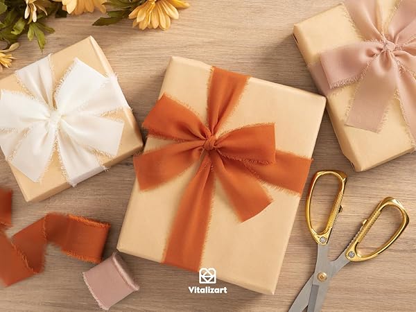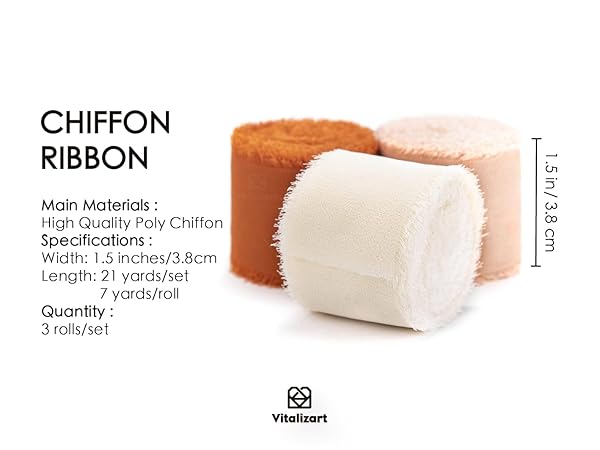 - Vitalizart Fall Handmade Chiffon Silk Ribbon Fringe 1.5" x 21 Yd Terracotta Cream Frayed Edges Ribbons for Wedding Invitations Bridal Bouquets Gifts Wrapping Crafts Holiday Party Decorations offers reliable performance and quality- You will get 3 rolls and 21 yards in total. Each roll: 1.5 inch x 7 yard- Premium silk-like chiffon material. Very sheer, soft and easy to cut- Handmade rustic frayed edges and selected solid colors to match different occasions
