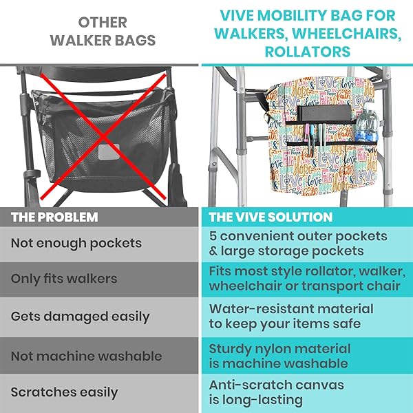 - Vive Wheelchair Bag - Machine Washable, Double-Stitched, Water-Resistant Accessory Backpack for Rollators, Wheel Chairs, Walkers - Pouch with XL Pockets & Straps for Quick Installation offers reliable performance and quality