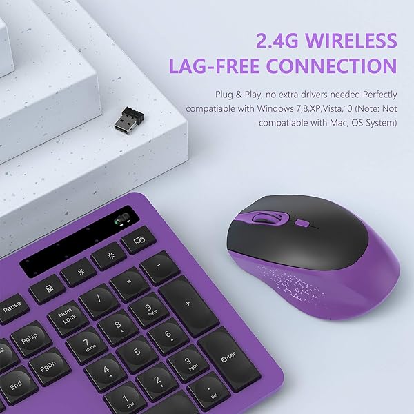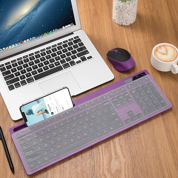 - VIVEFOX 2.4GHz Silent USB Wireless Keyboard and Mouse Combo - Full-Size Keyboard with Phone Holder and Mouse for Computer, Desktop and Laptop (Purple) offers reliable performance and quality