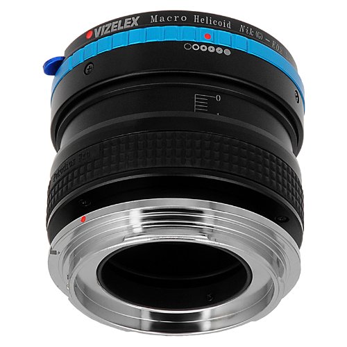- Vizelex Macro Focusing Helicoid for Nikon G and DX Lenses to Canon EOS DSLR Camera Body - Variable Magnification Helicoil with Built-in, De-Clicked Aperture Dial for Nikon G and DX Type Lens offers reliable performance and quality- Nikon nikkor f mount g-type D/SLR lenses to Canon EOS (EF, EF-S) mount SLR cameras- Variable focus helicoil enables multiple levels of macro; built-in, De-Clicked aperture dial for Nikon lenses
