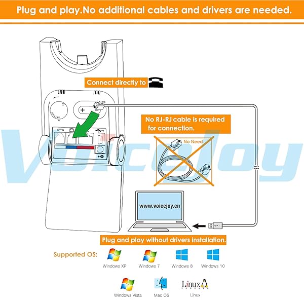 - VoiceJoy RJ9 to USB Cable for Jabra pro 900,pro920,pro925,pro930,pro935 offers reliable performance and quality- VoiceJoy A12 RJ9 to USB Cable for Jabra pro925 920 930 935- Plug and Play. No additional cables and drive are needed- Total length is about 40 inch- High performance for daily use