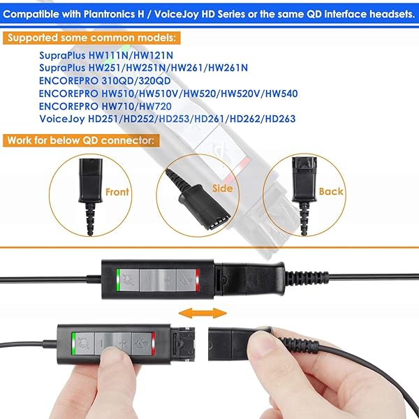 * VoiceJoy U20 Quick Disconnect QD to USB Plug Adapter with Mute Volume Control Compatible with Plantronics Headset QD Connector Plug to Any Computer Laptop VOIP Softphone 201852-01: compatible with all plantronics and voicejoy qd plugs same like this * Plug-and-play USB interface * No drivers needed * Volume adjuster * Mute for Speaker and Mute for Microphone separately