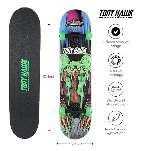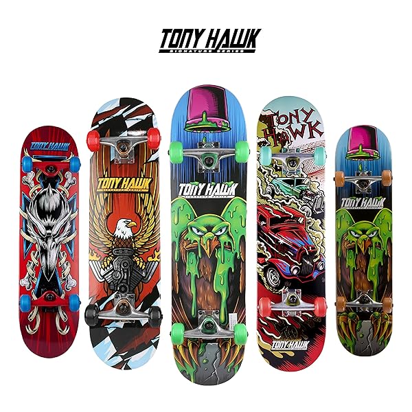- Tony Hawk 31" Skateboard - Signature Series 1 Skateboard with Pro Trucks, Full Grip Tape, 9-Ply Maple Deck, Ideal for All Experience Levels: reliable performance and quality- Perfect for All Riders: This 31 inch skateboard gives you just the- Portable and lightweight: Thanks to a sturdy wooden build coupled- Sturdy and stable build: The complete skateboard deck is made using- Tony Hawk Signature Series: The skateboard is suitable for all skill