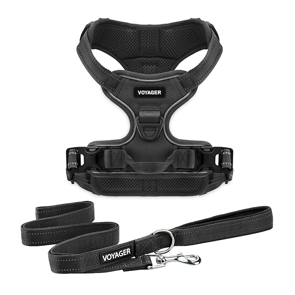 Voyager No-Pull Dog Harness with Dual Leash Attachment - Adjustable, Reflective, Soft & Strong for Medium/Large Dogs (Black)