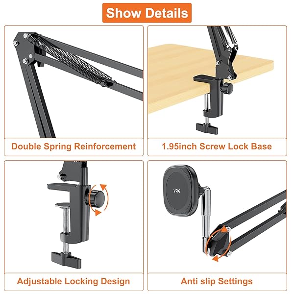 - VRIG Overhead Phone Mount Stand with Magsafe, Articulating Arm Cell Phone Holder for Desk, Cell Phone Holder for Live Streams, Zoom Calls, Online Teaching, Selfies, Remote Working with reliable performance and quality- Flexible ArmThis overhead tripod comes with 2 arms, suspension Arm can free to adjust to any angle. Keep your phone at appropriate distance from your eyes. Magnetic Phone Mount with 6 built-in strong magnets, the maximum bearing up to weight of 4 cellphones, making