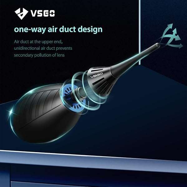 * VSGO Camera Air Blower with Soft Tip, Single Air Intake with Self-Suction Cup, Compatible with Camera Lens, SLR/Mirrorless Sensors, Reflectors, Focusing Screens, Coffee Machines and More: award-winning: vsgo air-move air blower won the 2019 red dot award * Special Technology:The camera air blower is manufactured by special technology * One-way air inlet channel * Self-suction design: The camera lens air blower have a self-suction base * Not easy to roll or get dirty