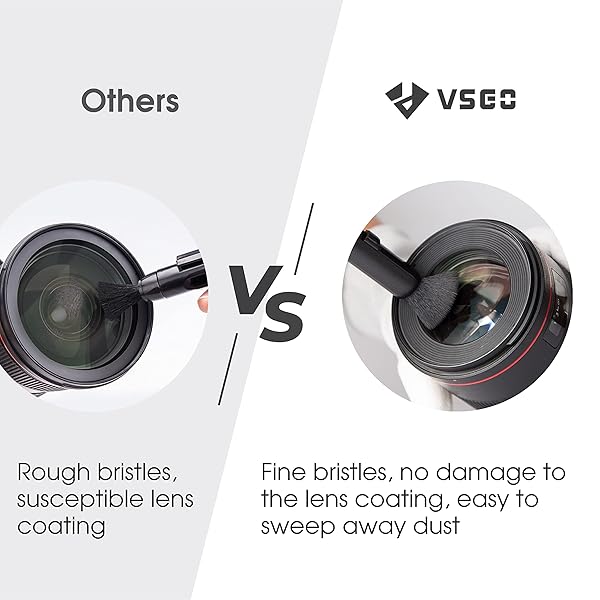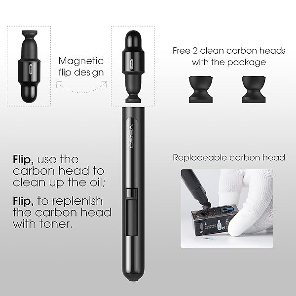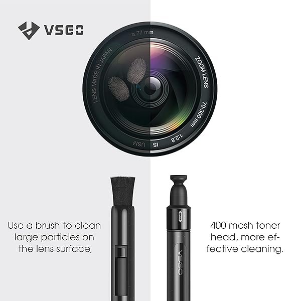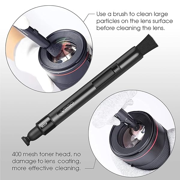 * VSGO Lens Cleaning Pen with Power Switch Compatible with Canon, Nikon, Sony Cameras, Binoculars, and AR/VR Glasses Includes 2 Replaceable Carbon Tips (V-P03E): [precision carbon cleaning tip] the cleaning tip is made from activated carbon powder * Effectively removing fingerprints * And smudges without scratching delicate optical coatings * [Soft Filament Dust Brush] Equipped with a fine filament brush to gently remove dust and debris from lens surfaces * Filter rims