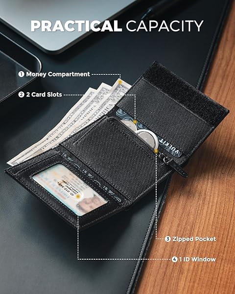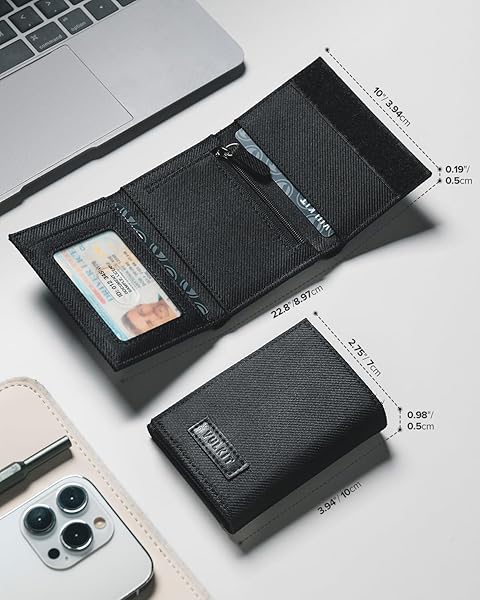- VULKIT Trifold Canvas Wallet Slim Credit Card Holder with 3 ID Windows & Zipper Pocket Rfid Blocking Minimalist Nylon Wallet for Men, Small Mens Polyester Touch Fasteners Wallet (Black) offers reliable performance and quality